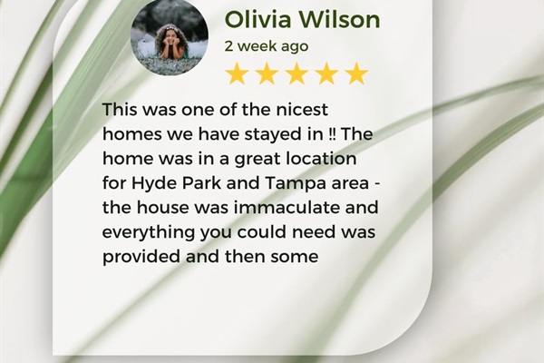 The property is centrally located near Tampa’s top destinations: 6 minutes to Downtown Tampa Short drive to Armature Works, Water Street, Ybor City, and Raymond James Stadium Convenient access to restaurants, cafés, shopping, and nightlife